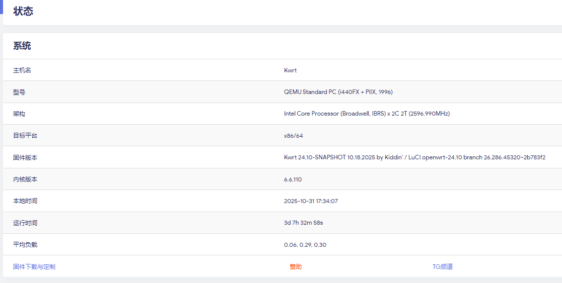 系统:Kwrt 24.10-SNAPSHOT 10.18.2025 by Kiddin' / LuCI openwrt-24.10 branch 26.286.45320~2b783f2